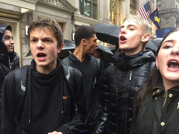Hundreds of high school students demonstrated in New York Tuesday morning outside Trump Tower in the pouring rain as the president-elect was inside fleshing out his new administration.